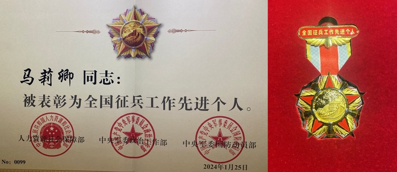 马莉卿同志从事征兵工作已有15个年头。多年来,她充分认识到做好征兵工作对于国家发展和军队战斗力建设的重要意义,始终保持一颗育人初心,爱岗敬业、无私奉献、关爱学生,把对国防和军队的热爱充分投入本职工作,自觉从讲政治的高度增强工作的责任心和紧迫感,始终秉承“身在兵中,兵在心中”工作理念,保持作风过硬、业务精良,全心全意为应征及退伍学生提供周到的服务。同时,她围绕新时代大学生特点,拓展工作思路、改进工作方法,抓好征兵工作的每一个环节,在国防教育、学生军训、征兵宣传、退役大学生管理等多项工作中均取得了优异业绩。