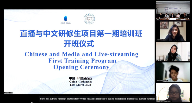 2024年3月12日,学校与印度尼西亚梅库布亚纳大学联合举办的“直播与中文研修生项目第一期培训班”以线上视频会议的方式顺利开班。