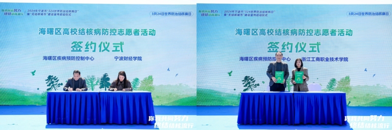 为全面推进海曙区结核病防控,进一步加大结核病宣传力度,区疾控中心和海曙区两所高校签订海曙区高校结核病防控志愿者活动协议。