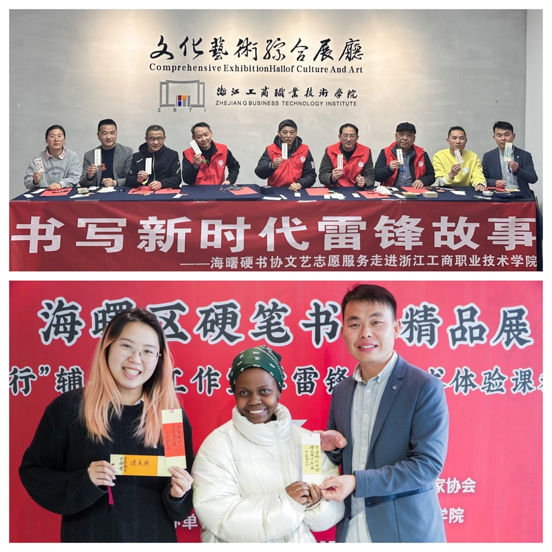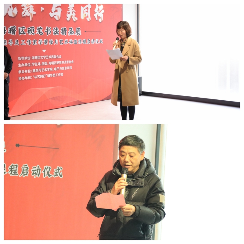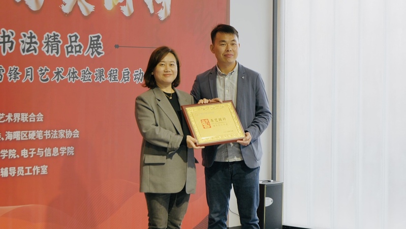 为扎实推进我校美育教育工作,3月21日下午,由海曙区文学艺术界联合会指导,我校学生处、团委和海曙区硬笔书法家协会主办,建筑与艺术学院、电子与信息学院承办,“与艺同行”辅导员工作室协办的“笔健龙舞·与美同行”海曙区硬笔书法精品展暨“与艺同行”辅导员工作室学雷锋月艺术体验课程启动仪式在我校文化艺术综合展厅举行。学生处、团委、二级学院相关负责人及师生代表、海曙区硬书协代表等百余人参加本次活动。