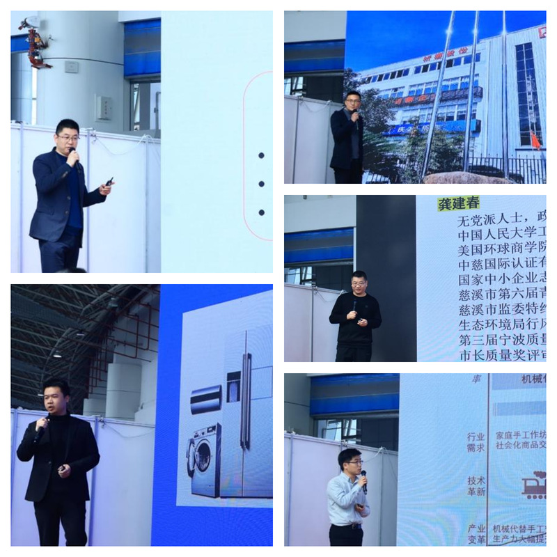 张青波为龚建春、陆明聪、陆科军、胡松科、吕林锋五位导师颁发聘书。王伟定为虞坚豪、高兴、陶芳菲、李楠铠、兰康灵、吴柯六位智造工匠颁发聘书。电子信息学院党总支副书记陈建明为两位制造工匠的工作室进行授牌。陆明聪为慈溪市数字经济协会与慈溪学院校企合作基地授牌。