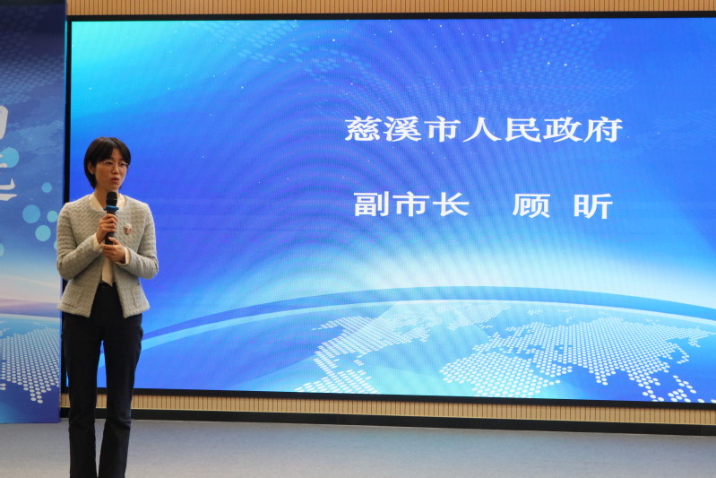 图为慈溪市副市长在活动上作讲话