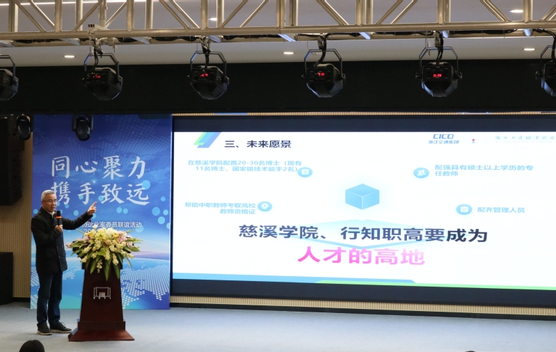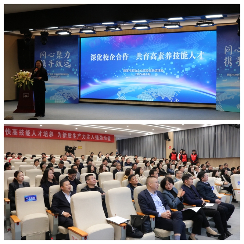 在全省加快构建现代职业教育体系的号召下,为贯彻落实好慈溪市市长章程批示精神,围绕慈溪市政协“关于以高职为突破口 聚力引育技能人才的建议”的提案,4月8日,慈溪市政协在我校慈溪学院召开2024年慈溪市政协企业家委员联谊活动(以下简称“活动”),政校企三方聚焦“深化校企合作,共育高素养技能人才”,提痛点、想办法、找出路,合力推进校企合作和慈溪市区域中高职一体化人才培养。