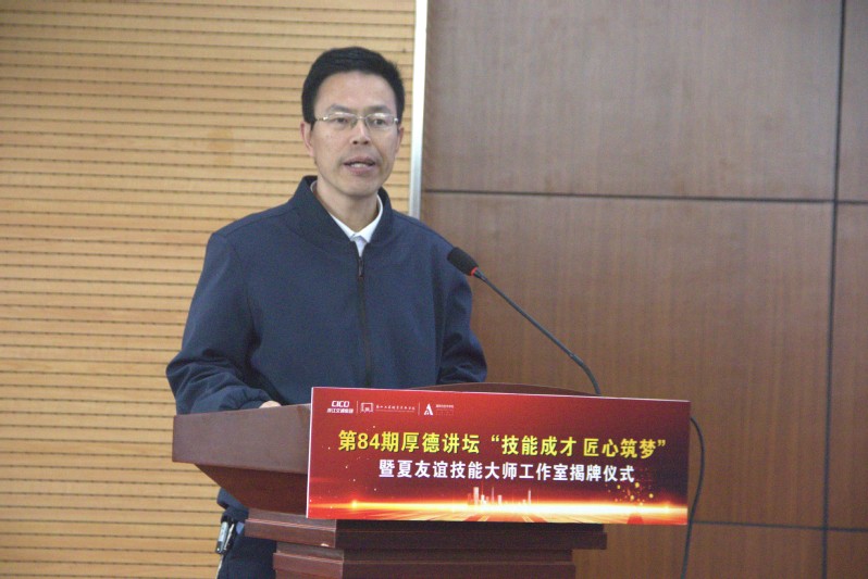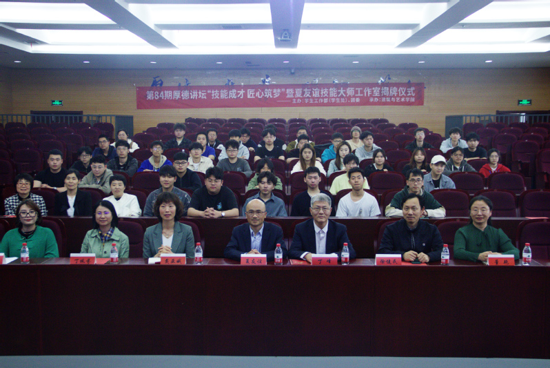 为深入学习贯彻党的二十大精神,全面落实立德树人根本任务,大力弘扬劳模精神、劳动精神、工匠精神,加快建设国家战略人才力量,努力培养大国工匠,2024年4月12日,“技能成才,匠心筑梦”——学校第84期厚德讲坛暨夏友谊技能大师工作室揭牌仪式在中和楼顺利举行,本次活动由我校学工部(学生处)主办、建筑与艺术学院承办。