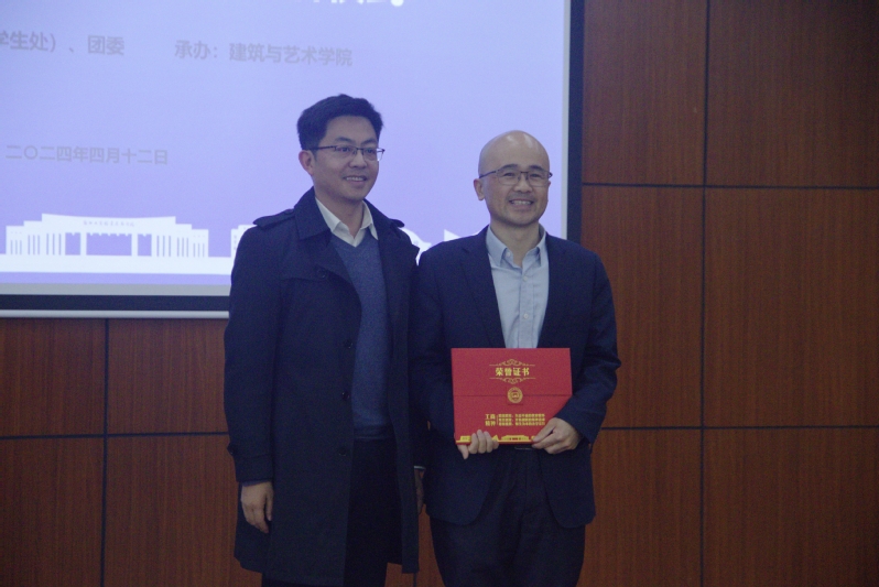 随后,建筑与艺术学院党总支书记戴亚娥为夏友谊、丁峰颁发“客座教授”聘书。谢骏为夏友谊颁发德育导师聘书。