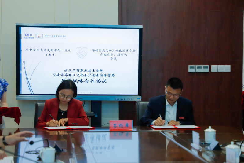 4月19日下午,“海曙区非遗研究传播基地”签约授牌仪式在我校至诚楼111圆满举行。该基地由宁波非遗保护利用研究基地、我校明智学院与宁波市海曙区文化和广电旅游体育局三方合作共建,我校党委书记史习明,副校长、党委委员张鹏飞,海曙区人民政府党组成员、副区长黄列,海曙区文化和广电旅游体育局党组书记、局长应彬及党组成员、副局长俞岚出席仪式。