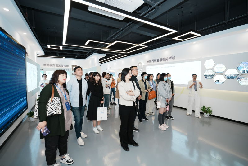 讲座后,与会领导和嘉宾参观了浙东环境能源交易所双碳展厅,全面了解国内外碳交易市场建设历程、全国碳交易市场情况、碳中和技术路径、企业双碳管理路径等内容。