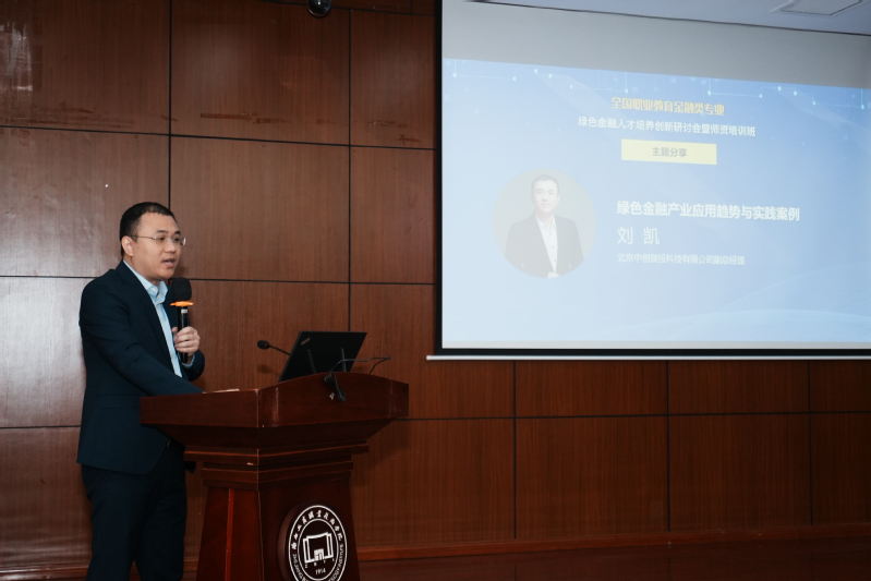 北京中创碳投科技有限公司副总经理刘凯带来题为《绿色金融产业应用趋势与实践案例》的主题讲座,从产业的视角为我们介绍了大量绿色金融产业应用及投融资服务的经验与案例,为绿色金融教学和研究打开了视角。