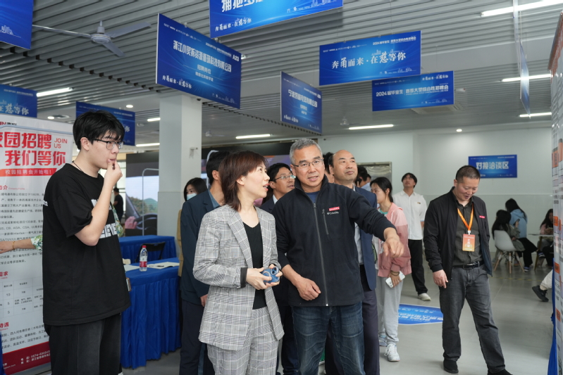 4月21日下午,由宁波市就业管理中心、宁波市人力资源发展服务中心、慈溪市人力资源和社会保障局联合主办,我校承办的“奔甬而来·在慈等你”2024届毕业生慈溪专场招聘会在慈溪学院成功举办。慈溪市人力资源和社会保障局副局长孙双亚,慈溪市教育局党委委员、副局长何军莅临现场指导。校党委书记史习明,党委副书记俞位增,副校长、党委委员张鹏飞,党委委员、宣传部部长陈军强,宁波行知中等职业学校书记裘宏山来到招聘会现场并与企业开展深入交流,与学生进行亲切的交谈,各相关部门、学院负责人也参加了本次活动。