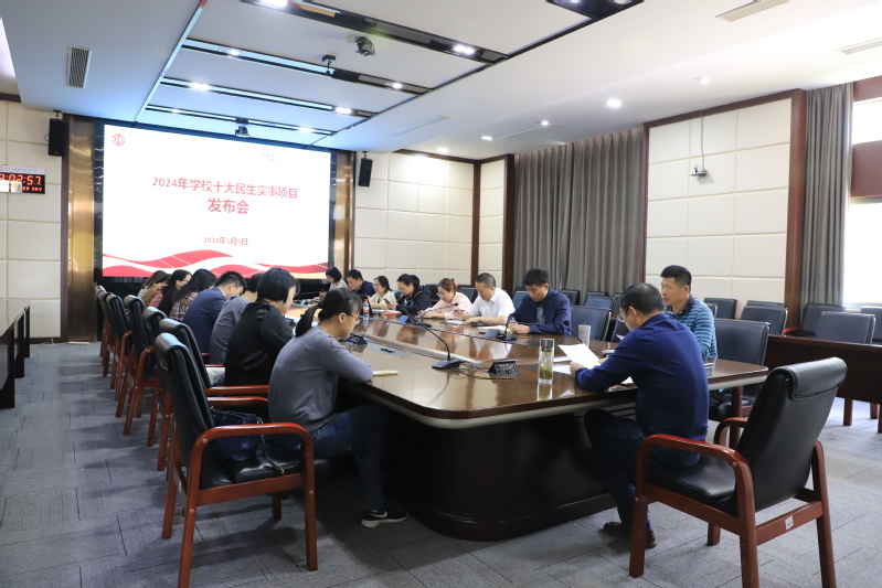 5月9日上午,校工会在至诚楼111会议室召开2024年学校十大民生实事项目发布会。校工会主席应晓清出席会议并讲话,民生实事承办部门负责人、入选民生实事项目建议人、分工会主席参加了本次会议,会议由工会副主席韩包海主持。