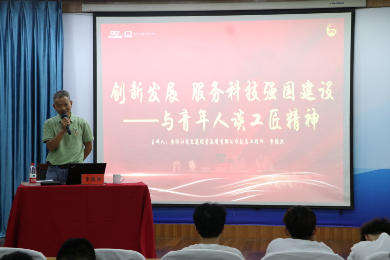 为了进一步弘扬工匠精神,激发工商青年的创新活力,2024年5月15日下午,我校团委特别邀请了原浙江省交通投资集团有限公司副总工程师曹德洪先生,为我校同学带来以“创新发展 服务科技强国建设”为主题的专题讲座,本次活动为2024年集团退休领导干部进工商系列讲座的第二期,同时也是我校厚德讲坛其中一期,吸引了来自各二级学院百余名青年学子参与,旨在帮助大家深入理解工匠精神的时代价值与实践路径。本次活动由团委书记包培红老师主持。