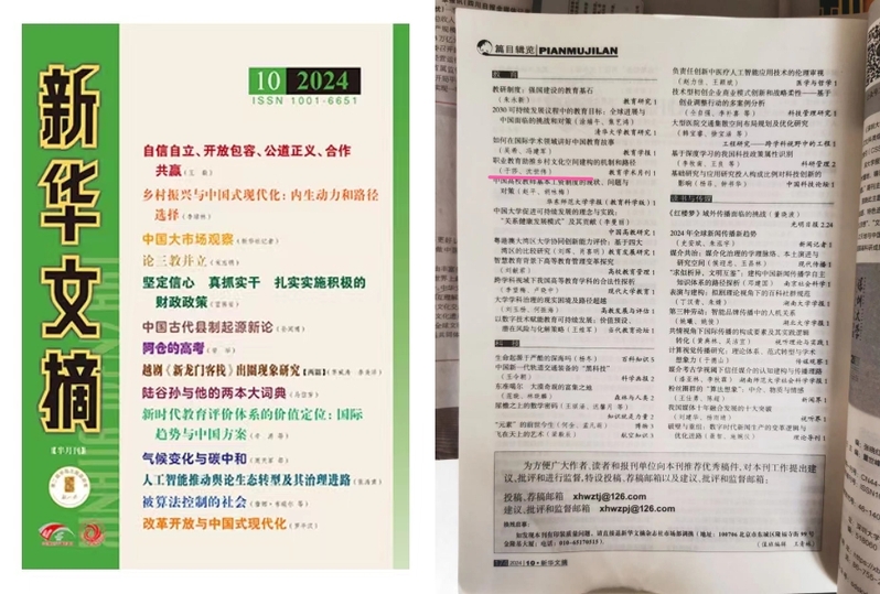 《新华文摘》是我国人文社科领域的权威学术文摘之一,学术影响力深远,我校教师论文被《新华文摘》篇目辑览转载,既是对作者学术研究成果的充分肯定,也表明学校自设立研究中心以来,职业教育研究迈向了新的层面。下一步,科研处将进一步加强科研体制机制改革,不断优化学术环境,持续激发科研人员创新潜力与创新能力,以高水平科研服务学校高质量发展。