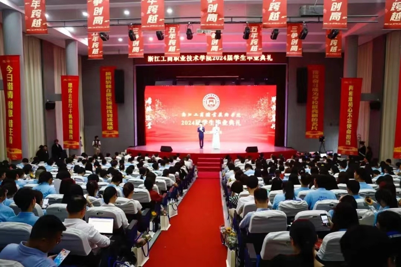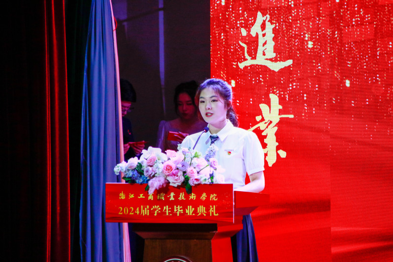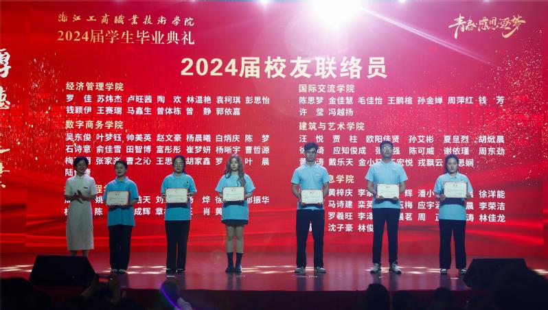 典礼现场,校长张启富为全体浙江省优秀毕业生颁发毕业证书,副校级领导徐盈群颁发校友联络员聘书。全体毕业生庄严地进行了廉洁从业宣誓,他们齐声承诺,将恪守职业道德,坚守廉洁自律,以勤勉的态度、诚信的品格和实干的精神,迎接未来的挑战。诗朗诵《你好,未来的我们》,同学们以朝气蓬勃之姿表达了对未来的美好憧憬与无限向往。