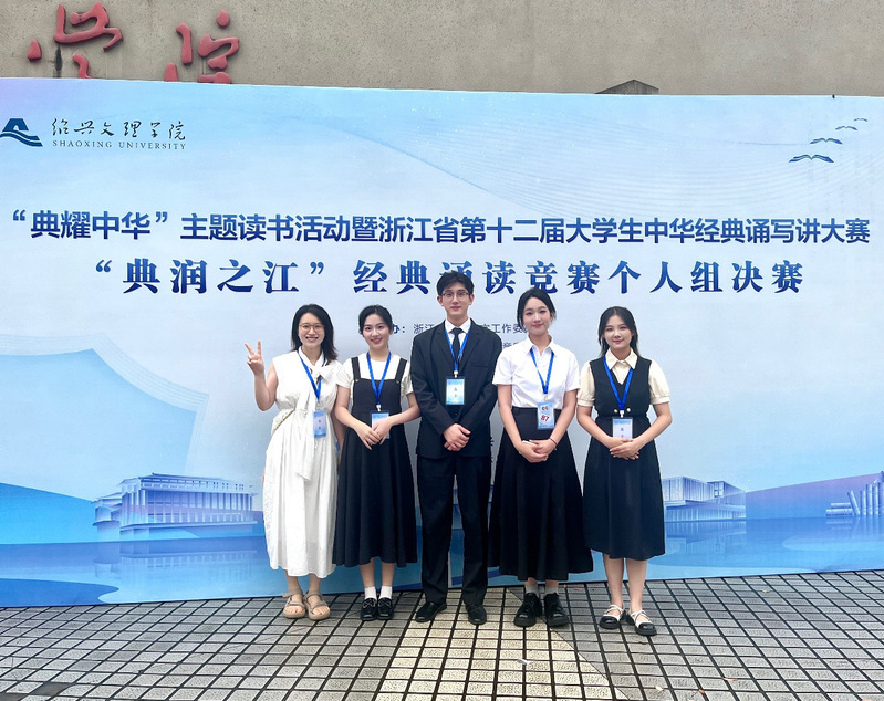 近日,浙江省第十二届大学生中华经典诵写讲大赛“典润之江”经典诵读竞赛在绍兴文理学院落下帷幕,由明智学院韩越、王国庆、毛燕敏三位老师共同指导的5位选手在个人组中斩获一个一等奖、三个二等奖和一个三等奖,延续了历年来我校在该项赛事中优秀成绩。