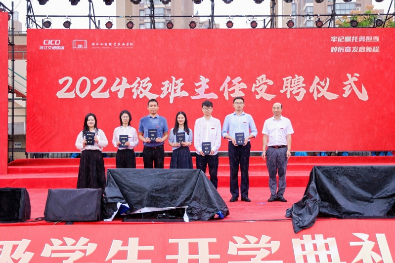 典礼还举行了新教师入职仪式、2024级班主任受聘仪式和新生入学仪式。史习明为荣获浙江交通集团学表奖、师表奖的同学、校友、老师颁奖,张启富为新教师们颁发校徽、赠送书籍,党委副书记俞位增为2024级班主任颁发聘书。全体校领导为新生代表佩戴校徽,副校长、党委委员应晓清为新生奖学金获得者颁奖,现场还分别举行了师生代表宣誓仪式,小小的校徽蕴含着浓浓的校魂,铮铮的誓言是工商人作出的庄严承诺。