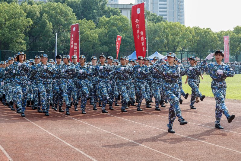 庄严的升旗仪式后进行了分列式,19个方阵踏着铿锵有力的正步依次通过主席台。嘹亮的口号声与整齐划一的步伐交相辉映,充分展现了我校学子“意气风发、蓬勃向上”的精神风貌。为期两周的军训中,同学们通过内务评比、晨训养习、应急救护培训、消防演练等系列课程,以准军人标准锤炼纪律意识,在团队协作中领悟“众志成城”的真谛,实现了从“个体成长”到“集体担当”的蜕变。