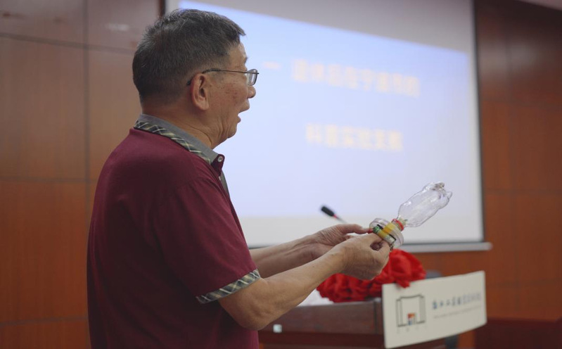 本期讲坛特邀宁波工程学院原副校长、巡视员忻元华老师担任主讲。年近八旬的“魔法爷爷”忻元华用惊险有趣的酒精实验开启了他的支教故事,并分享了自己退休后奔赴西部8个省份、53所山区学校的支教经历。他通过亲手制作的科普教具、生动的教学案例以及山区孩子们的笑脸、故事,诠释了“热爱与坚持”的深刻内涵,并勉励新生珍惜大学时光,尽快完成角色转变,学会自主学习、独立思考,保持探索精神与社会责任感。