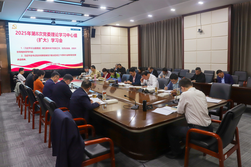 10月21日上午,学校召开党委理论学习中心组(扩大)会议,深入学习《习近平谈治国理政》第五卷相关内容,以及习近平总书记在庆祝新疆维吾尔自治区成立70周年大会期间讲话精神。学校党委理论学习中心组成员和全体中层正职参加。会议由校长、党委副书记张启富主持。