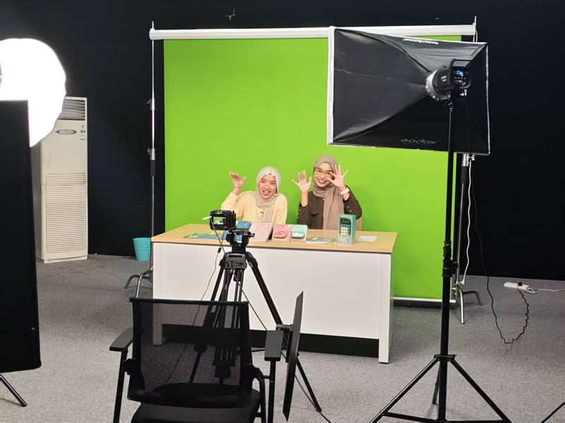 “家人们看这里!这款得力笔记本用中国清代绘画作为特色封面,纸张也非常顺滑……”在浙江工商职业技术学院的直播实训间,经管专业学生阿尔佳正手持得力文创产品,用流利的中文进行模拟直播。演播间外,其他印尼同学纷纷为她点赞。这场生动的直播实训,正是此次研学之旅的缩影。