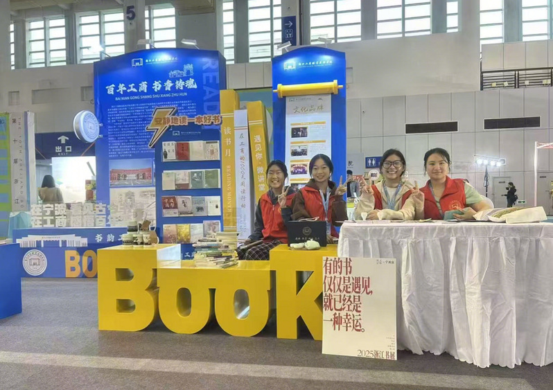 在国际会展中心5 号馆,我校以“百年工商,书香铸魂”为主题布展。学校将办学特色与书香文化深度融合,全方位展示了原创校史剧《迁徙》、“厚德讲坛”、“科技文化节”、“遇见你˙微讲堂”等标志性文化品牌,展现“书香校园”建设成果。学校倡导的“安静地读一本好书”阅读理念,在核心展区醒目呈现,与书展倡导的全民阅读氛围深度契合。展位还设置了涵盖经济学、工学、地方文化等多个领域的“教师著作展示区”。我校展区得到浙江书展组委会的高度评价,获评“书香典范奖”。