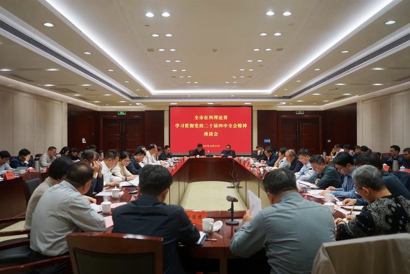 10月27日下午,市委宣传部、市社科联(市社科院)组织召开全市社科理论界学习贯彻党的二十届四中全会精神座谈会,全市社科理论工作代表50余人参加了座谈会。