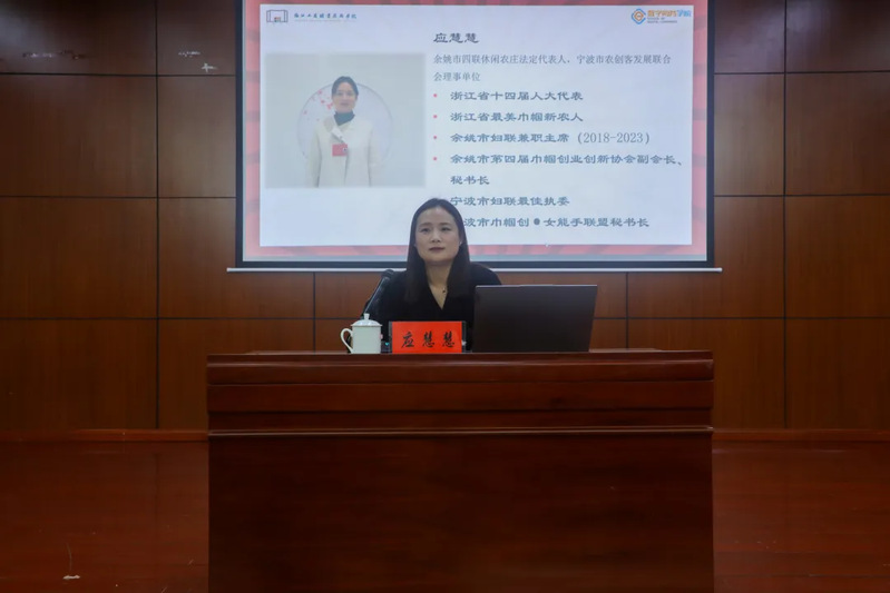 10月29日,由学生工作部(学生处)主办、数字商务学院承办的第116期厚德讲坛暨人大代表进校园活动在中和楼217报告厅举行。校党委副书记俞位增,学工部部长郑芳,浙江省十四届人大代表、数字商务学院教授、博士周井娟,数字商务学院党总支书记戴亚娥,数字商务学院党总支副书记汤怿,职业教育研究中心专职研究员以及师生代表共200余名师生参加活动。本期讲坛特邀浙江省十四届人大代表、余姚市四联休闲农庄法定代表人应慧慧担任主讲嘉宾,分享其扎根农业领域的创业故事。