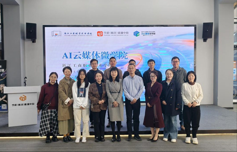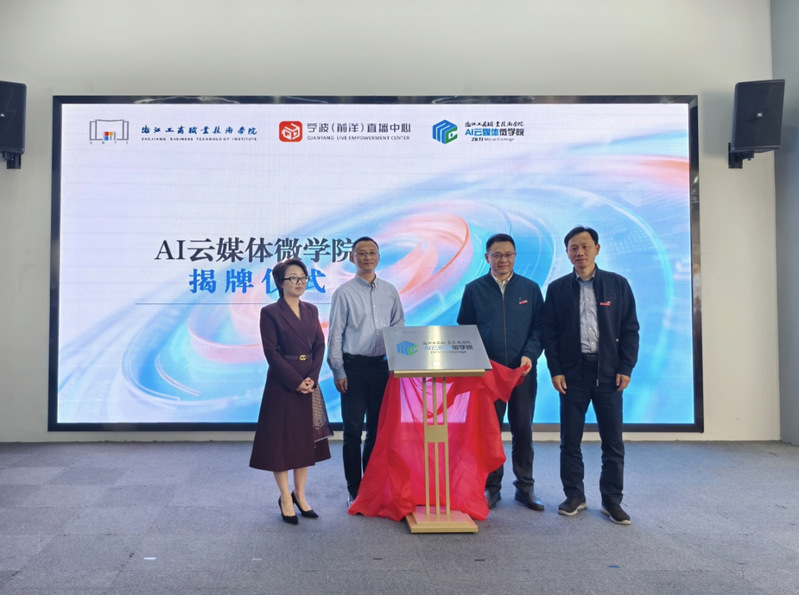 10月28日,我校与宁波(前洋)直播中心共建的“AI云媒体”微学院在直播中心正式揭牌。校长、党委副书记张启富,党委委员、宣传部部长陈军强,宁波(前洋)直播中心董事长陈晓栋,商学院院长江燕,我校办公室、教务处、学工部、社会服务处、建筑与艺术学院相关负责人,以及数字媒体、影视传播等专业师生代表共同出席仪式。