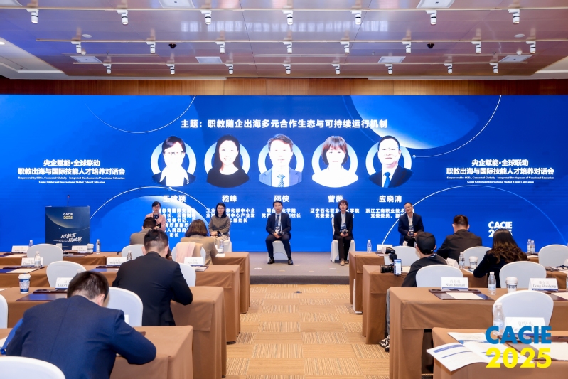 2025 年 10 月 29 日,第 26 届中国国际教育年会在北京国家会议中心举行。该年会由中国教育国际交流协会主办,以 “以教育见世界” 为主题,吸引 70 余个国家和地区的驻华使领馆官员、教育机构代表、地方教育行政部门负责人、中外院校校长及相关合作伙伴等,共 5000 余名中外教育工作者参会。我校副校长、党委委员应晓清作为特邀嘉宾,出席了年会的平行论坛“央企赋能·全球联动——职教出海与国际技能人才培养对话会”,并在论坛上分享了我校在职业教育国际化领域的创新模式与实践探索。