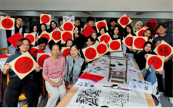 “福字里藏着中国古人的幸福密码!”Darma举着刚学会书写的“福”字,向同伴们分享着书法老师的讲解:“房顶、家人、田地,这是最简单也最珍贵的幸福。”在学校图书馆的书画角,笔墨飘香间,印尼青年与中国传统文化完成了一次亲密接触。不止于书法,访学团的文化之旅丰富多彩:莲桥第国医堂内,他们跟着中医师学习辨识药材、称包中药,体验八段锦的舒展通透;婚俗博物馆里,指尖翻飞间剪出寓意吉祥的喜字,感受中式婚礼的浪漫底蕴;青瓷体验基地中,拉坯、彩绘、烧制,亲手制作的陶艺作品成为珍贵的文化信物。成员们不禁感叹:“文化没有国界,美好总能共鸣”,这些活动使自己在美好的体验中“读懂了中国”。