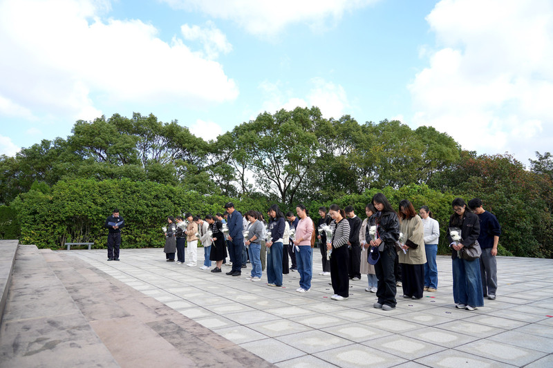 素拓团队首先来到镇海革命烈士陵园,在纪念碑前整齐列队、敬献花篮、鞠躬默哀,深切缅怀革命先烈。随后,大家在参观了烈士事迹陈列馆,了解了革命先辈为民族解放浴血奋战的英雄事迹后深受触动。他们纷纷表示,将以先烈为榜样,从红色历史中汲取精神力量,将红色基因融入思政教育工作,引导学生厚植家国情怀、坚定理想信念,切实担负起立德树人的根本任务。