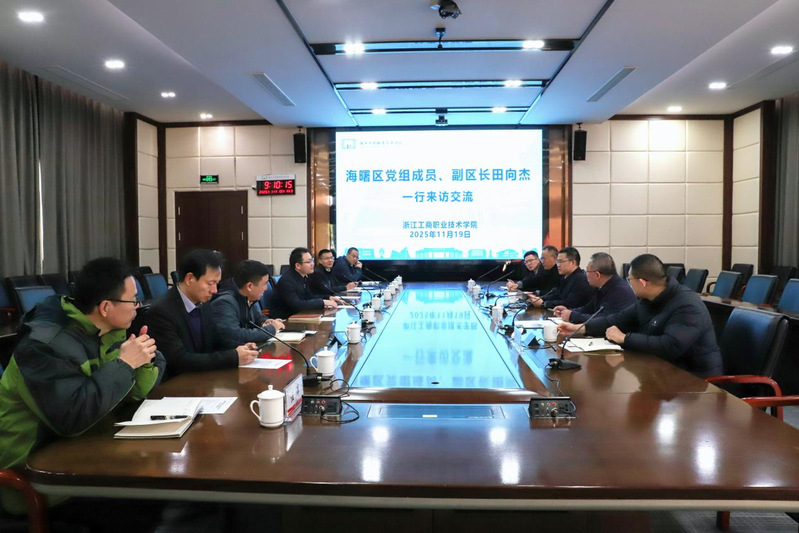 为深化校地合作,共谋发展新篇,11月19日,海曙区政府党组成员、副区长田向杰带领区办公室党组成员、副主任吕静若,区教育局党委委员、二级调研员胡锐,区文广旅体局副局长、党组成员黄冬等一行到我校访问交流。校长、党委副书记张启富,副校长、党委委员张鹏飞,副校长、党委委员楼晓东出席座谈会,办公室、教务处、安全保卫部、后勤基建处、建筑与艺术学院、公共基础部等相关部门负责人参加会议。