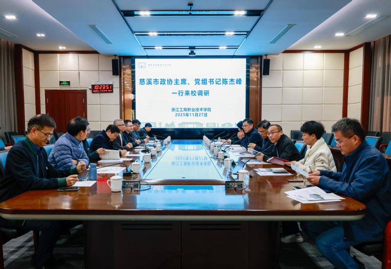 11月27日,慈溪市政协主席、党组书记陈杰峰,慈溪市政协副主席、党组副书记张红军,慈溪市政协秘书长、党组成员华利波,慈溪市政协办公室主任徐迪,慈溪市教育局局长杨儿,慈溪市文广旅体局局长、民盟慈溪市基层委主任邹霞芳等一行来我校开展调研工作。党委书记史习明,校长、党委副书记张启富,副校长、党委委员张鹏飞,党委委员、组织部(统战部)部长任一波出席座谈会,相关部门负责人陪同参观。双方着重围绕慈溪学院建设发展、市校合作等事项展开座谈交流,共谋高职教育助力慈溪经济高质量发展大计。