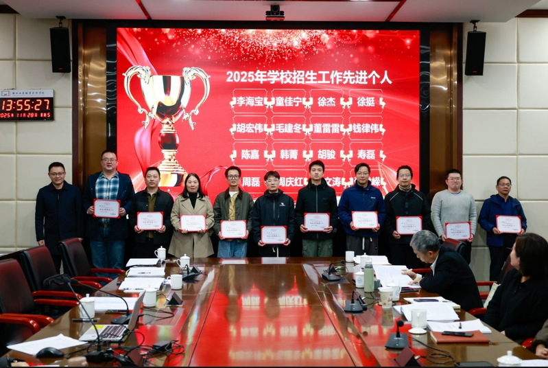 会上,楼晓东宣读了学校“2025年度招生工作先进个人”表彰文件,张启富为获奖教工颁发荣誉证书。