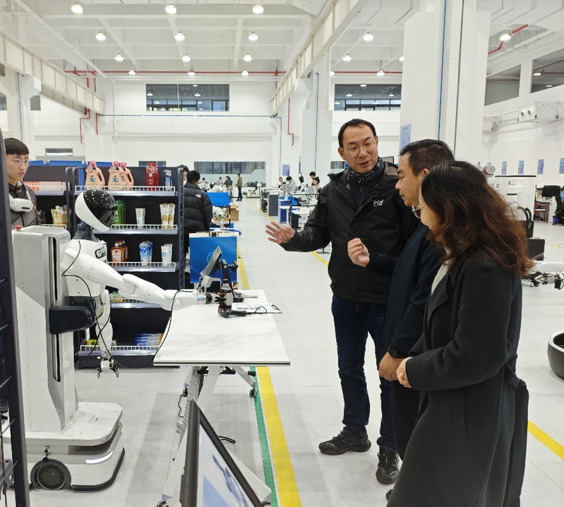 为深入推进产教融合、拓展校企协同育人新路径,12月4日,副校长、党委委员楼晓东,人工智能学院院长李亚峰等相关部门负责人一行,赴宁波普智未来机器人有限公司开展调研,看望“普智未来订单班”实习学生,并与公司总经理黄浩勇等就进一步强化工业具身智能领域的校企合作举行座谈交流。