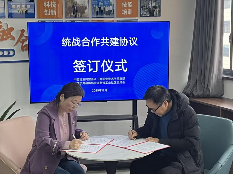为服务宁海学院“智汇宁新”微学院建设,民盟浙江工商职业技术学院支部与新梅工业社区签订了统战合作共建协议。双方围绕如何充分发挥高校统战人才智力密集优势展开深入交流,将在人才共育、技术攻关、职工培训、文化共建等领域加强协作,以提升工业社区服务能级,助力区域经济高质量发展。此次合作也将支持民盟宁海学院的博士团队进一步融入地方,促进社区产业资源、企业需求与高校教学科研更紧密对接,持续增强社会服务能力。