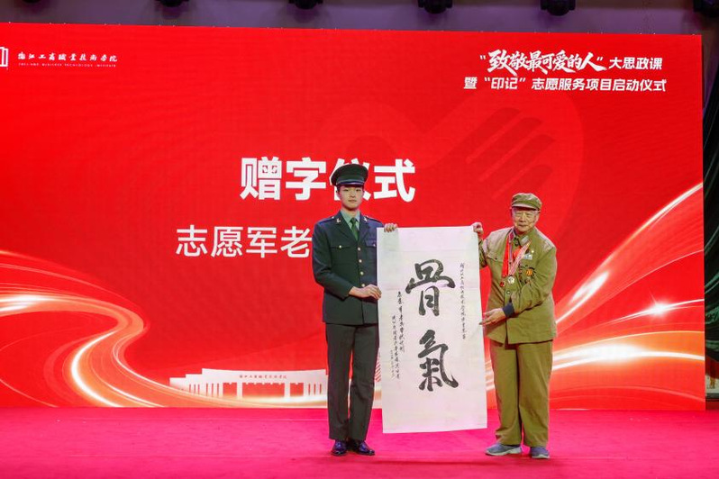为纪念中国人民志愿军抗美援朝出国作战75周年,12月12日,我校举行“致敬最可爱的人”大思政课暨“印记”志愿服务项目启动仪式。党委副书记俞位增,党委委员、宣传部部长陈军强出席仪式,志愿军老兵周成苗、王起田,海曙区志愿者协会副秘书长孙嘉怿出席仪式,我校相关职能部门负责人,各二级学院党总支书记、副书记,师生代表参加仪式,共同重温红色历史、致敬英雄先辈。