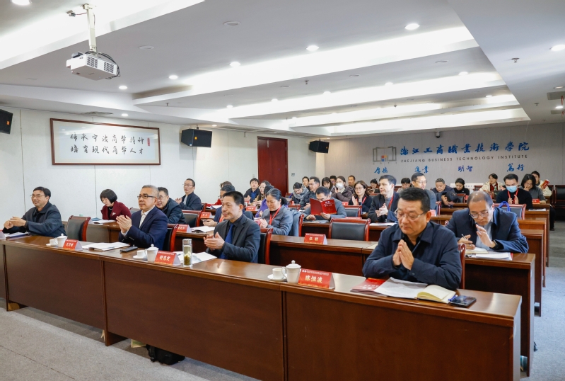 党委书记史习明,党委副书记俞位增,浙江省马克思主义学会马克思主义教育思想研究分会发起人、湖州师范学院副校长舒志定,舟山旅游商贸学校党委书记陈恒波,西南大学教育学部教授彭泽平出席大会,来自省内19所高校的马克思主义学院、教育学院院长、专家学者、骨干教师以及中职学校代表50余人线上线下参加会议,围绕党的二十届四中全会精神和以活化文脉增强教育的思政引领力展开深入学习与交流。