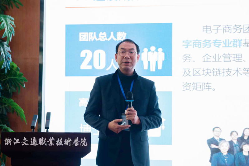 在全省职业教育教师教学创新团队建设成果分享和交流会上,楼晓东应邀作为优秀团队代表,面向全省与会兄弟院校领导和团队负责人,专题分享了我校电子商务专业团队建设的典型经验与做法。他重点介绍了团队探索实践的“一闭环两跨界”教师教学团队培养模式。该模式以“岗课赛证教师能力培养闭环”为核心,同时着力推动“电商+农业”与“电商+出海”两跨界,打破学科与产业壁垒,打造了一支结构优、能力强、紧跟行业前沿的复合型教学创新团队。这一模式的实践成效与创新思路,为全省职业教育教师团队建设提供了可以借鉴的“工商样板”,获得了广泛关注与好评。