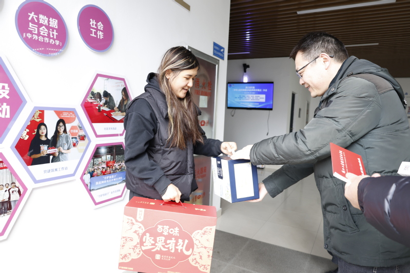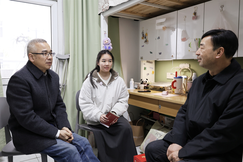 在与一位身残志坚的学生交流时,史习明对她乐观向上、勤奋求学的精神面貌给予了高度肯定,得知她刚刚代表学校获得了第八届“卡尔·马克思杯”浙江省大学生理论知识竞赛个人二等奖、团体一等奖的好成绩后,史习明鼓励她继续保持积极心态,争取在新的一年取得更大的突破。在与一名来自贵阳的学生交流时,史习明表示自己多次去过贵州,在工商相聚是难得的缘分。面对一名来自新疆的学生,张启富仔细询问该生日常学习节奏与生活适应情况,并贴心关怀返乡交通安排与假期计划,叮嘱其遇到困难及时向学校反映。在联系寝室,史习明、张启富与同学们约定今后将随时到寝室看望,与大家交流。随行的学工部及各学院负责人表示,将持续关注受资助学的成长需求,精准对接帮扶事项,不仅在物质上给予支持,更在精神上给予鼓励,为学生成长成才提供更有力的支撑。同学们纷纷表示,深切感受到了学校大家庭的温暖,将把这份关怀转化为学习的动力,珍惜在校时光,以更加刻苦的态度钻研学业,以更加积极乐观的心态面对生活挑战,用优异的成绩和实际行动回报学校与社会的培养。