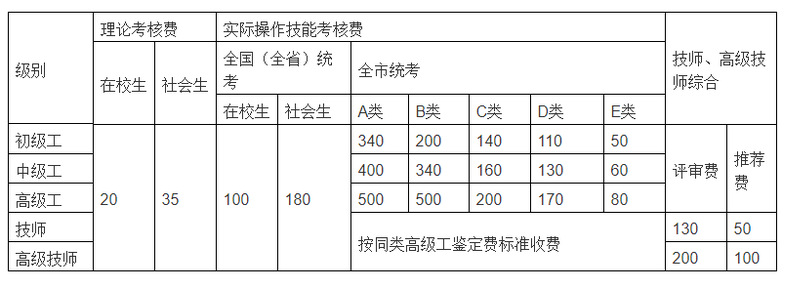 收费标准参考依据:宁波市职业技能鉴定工作网发布的《单位收费目录公示清单》(实操考核收费标准参照C类)