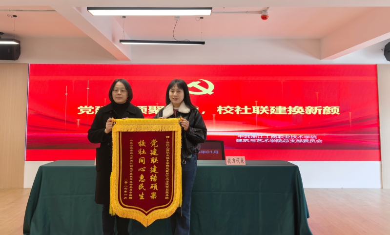 为创新基层党建工作载体,深化产教融合与协同育人机制,共同助力学生成长成才与区域高质量发展,1月13日,我校建筑与艺术学院党总支与江北区甬江街道万象社区党支部开展党建联建活动。校地共建签约及揭牌仪式在万象社区举行。