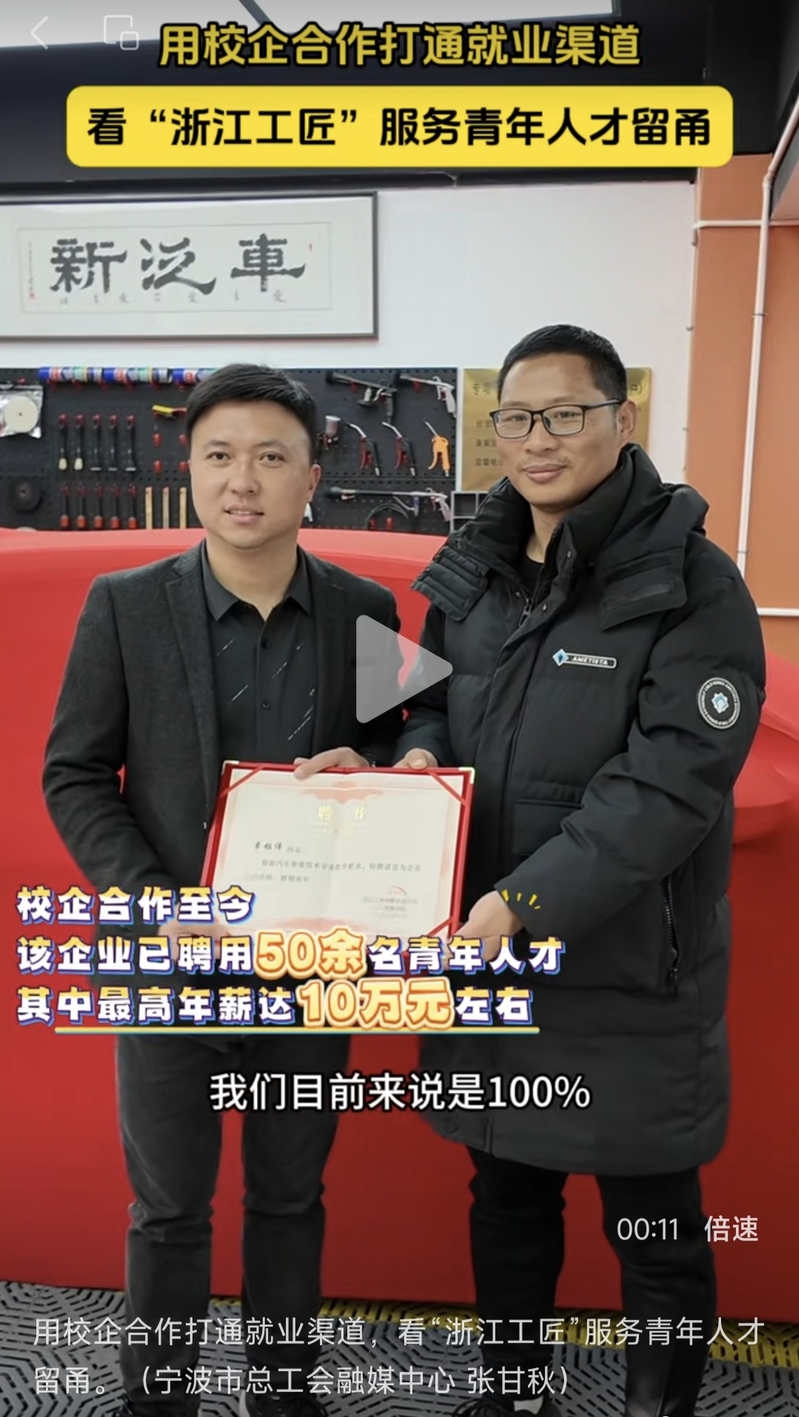 1.甬工惠视频号(宁波市总工会融媒体中心)——《用校企合作打通就业渠道,看“浙江工匠”服务青年人才留甬》
