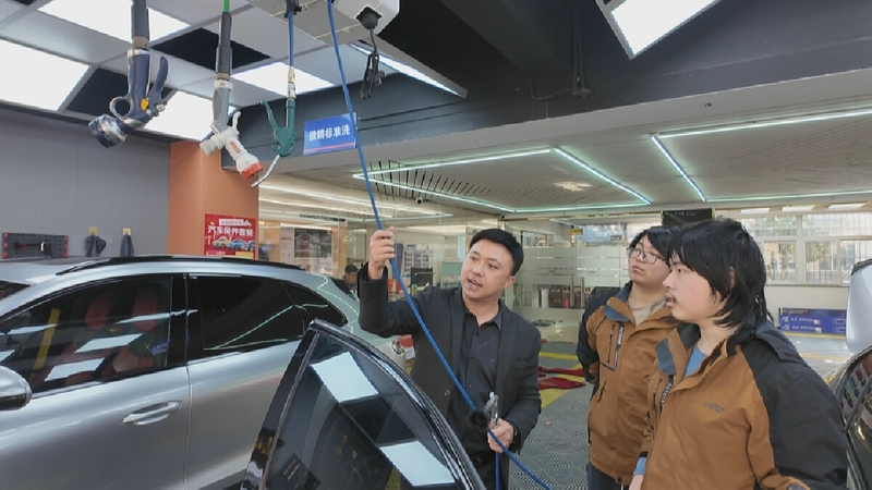 活动中,章雄伟带领同学们实地参观并体验了精细洗车、车辆美容、汽车维修、钣金油漆等核心业务,近距离了解汽车后市场的专业服务流程与技术标准。