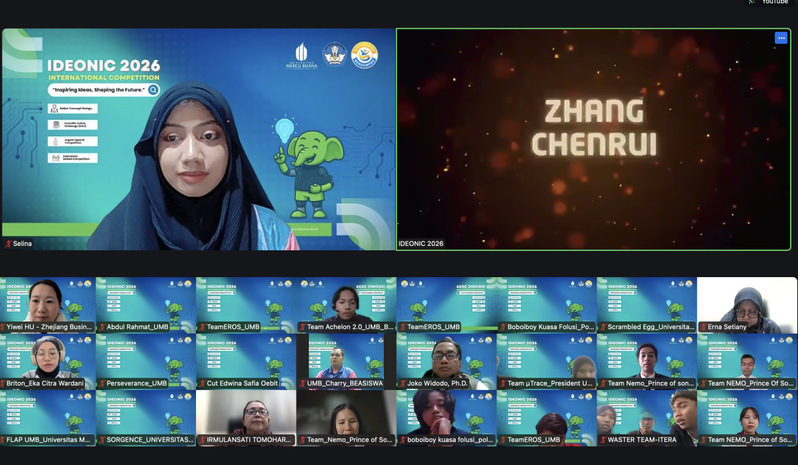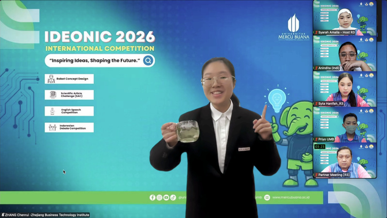 近日,由印度尼西亚梅库布亚纳大学主办的印尼国家级赛事“IDEONIC 2026国际竞赛”顺利落幕。本次赛事以“Inspiring Ideas, Shaping the Future(启迪思想,塑造未来)”为主题,吸引了印尼、中国、马来西亚、泰国等多国青年学子同台竞技,搭建起展示创新思维与英语表达能力的国际交流桥梁。