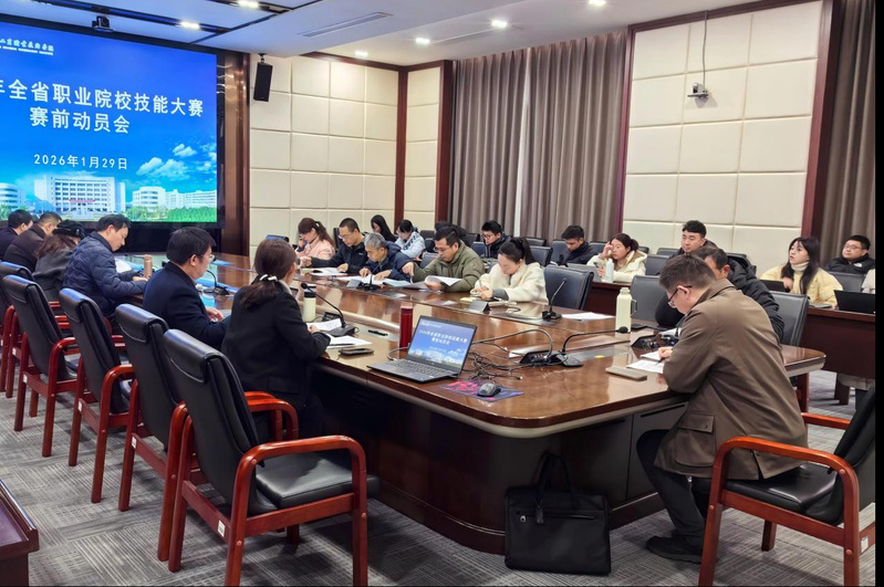 为扎实推进2026年全省职业院校技能大赛备赛工作,我校于2026年1月29日召开赛前动员会。校长、党委副书记张启富,副校长、党委委员楼晓东,教务处、各二级学院负责人及全体参赛队第一指导教师参加会议。会议由教务处处长胡蕙芳主持。